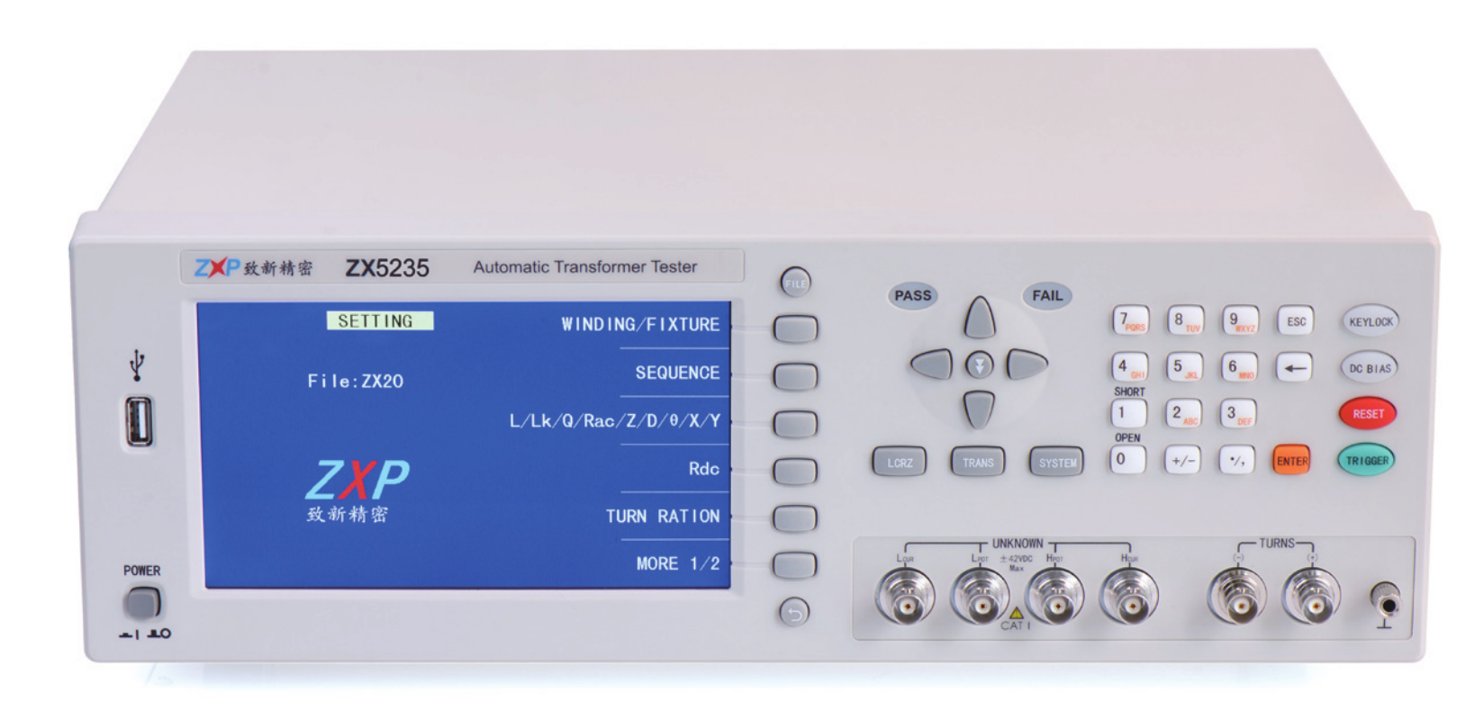 ZX5235是本公司在新一代變壓器綜合測試儀ZX2789的基礎(chǔ)上,為 適應(yīng)廣大電源變壓器用戶推出的,操作習(xí)慣與*5235高度兼容,工裝夾 具與*5220完全兼容的20P變壓器綜合測試儀器。