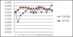 測試速度快了,還必須保證測量數(shù)據的穩(wěn)定性,左圖是兩種不同的機型,大家都用各自的最快測試速度,掃描測試同一個網絡變壓器同一個繞組的漏感15次的測量數(shù)據分布圖,我們可以看到,ZX2789的測量數(shù)據的一致性要略好一些。